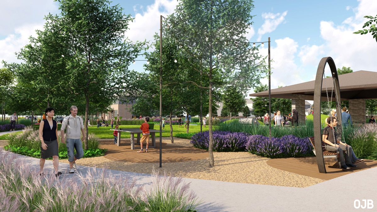Parkland Row will feature 288 homesites with all homes built by David Weekly, known for their energy efficient homes. Ranging from 1,400 to 3,400 square feet, architecture in Parkland Row will be Modern Farmhouse and Modern Prairie, mimicking home styles in Parkland Square. Designed to encourage community engagement, the community consists of well-connected streets and pathways and will incorporate features to make the neighborhood walkable to future schools, shopping, and public spaces. Centrally located Adventurous Park will give residents the ability to spend more time outdoors enjoying shared amenities like a dog park, playground, large lawn and event pavilion for fitness classes and neighborly outdoor get-togethers.